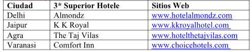 Nota: La hora de entrada/salida es a las 12:00 hrs en todos los Hoteles.