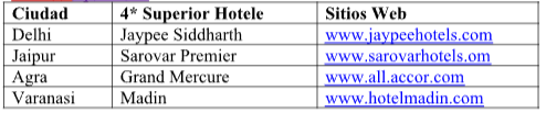 - 08 Noches de alojamiento en los hoteles mencionados.